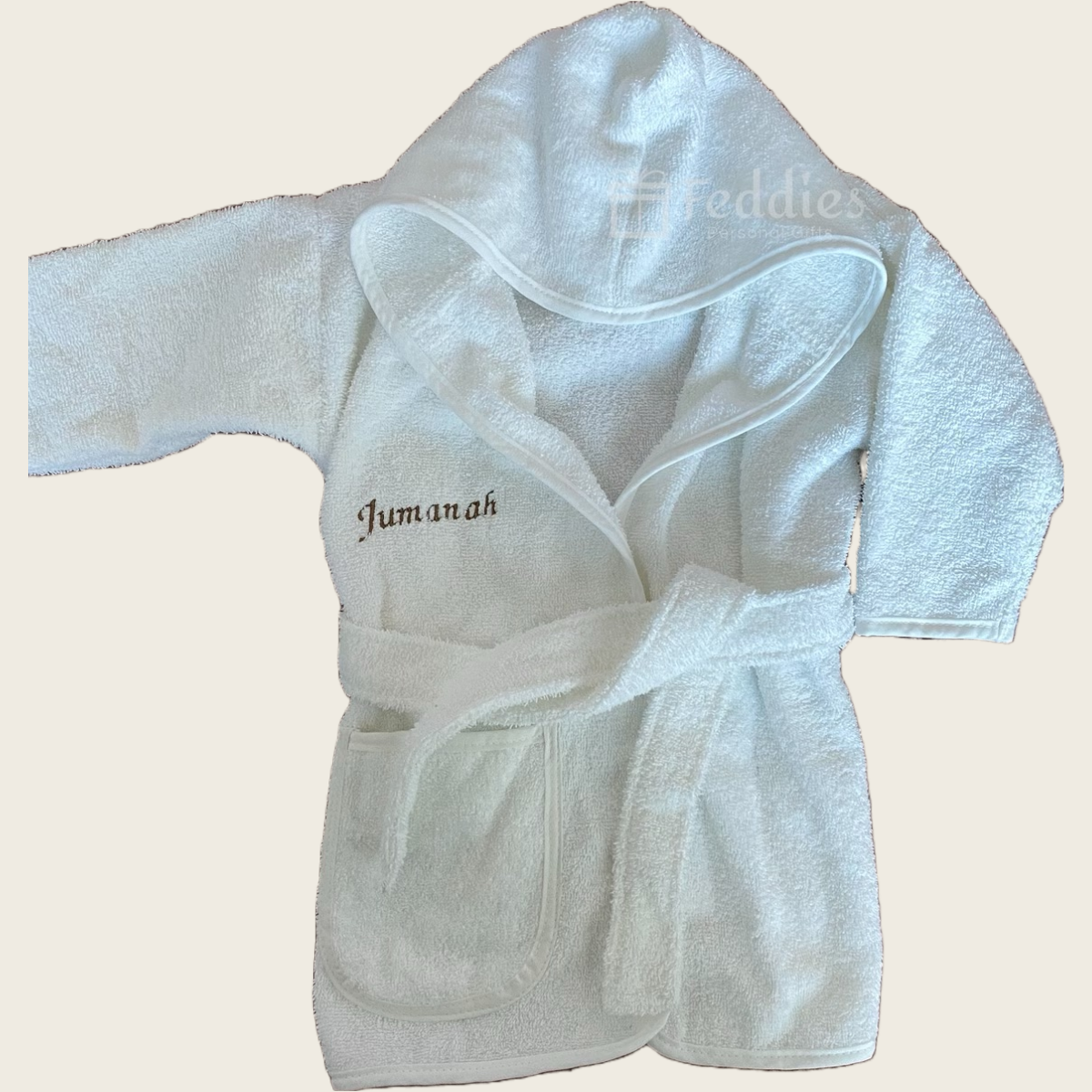 Babybadjas met naam geborduurd. Super leuk als cadeau, of voor je kleine baby. Deze badjas is gemaakt van badstof, dus lekker zacht! Badjas is geschikt voor een baby tot 1 jaar.