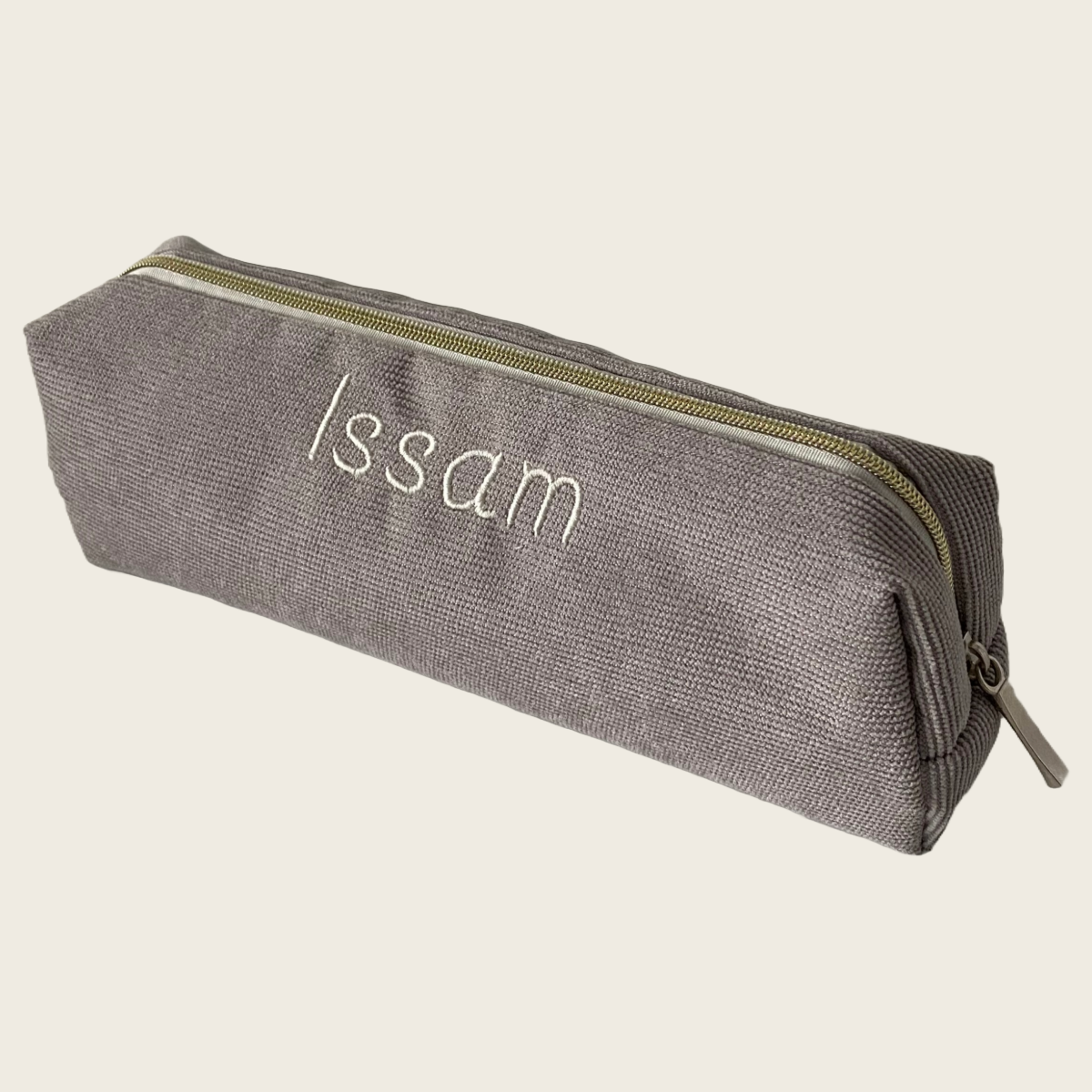 Deze handige etui, heeft een mooie zachte stof. De naam wordt in de etui geborduurd. De etui is verkrijgbaar in twee kleuren.