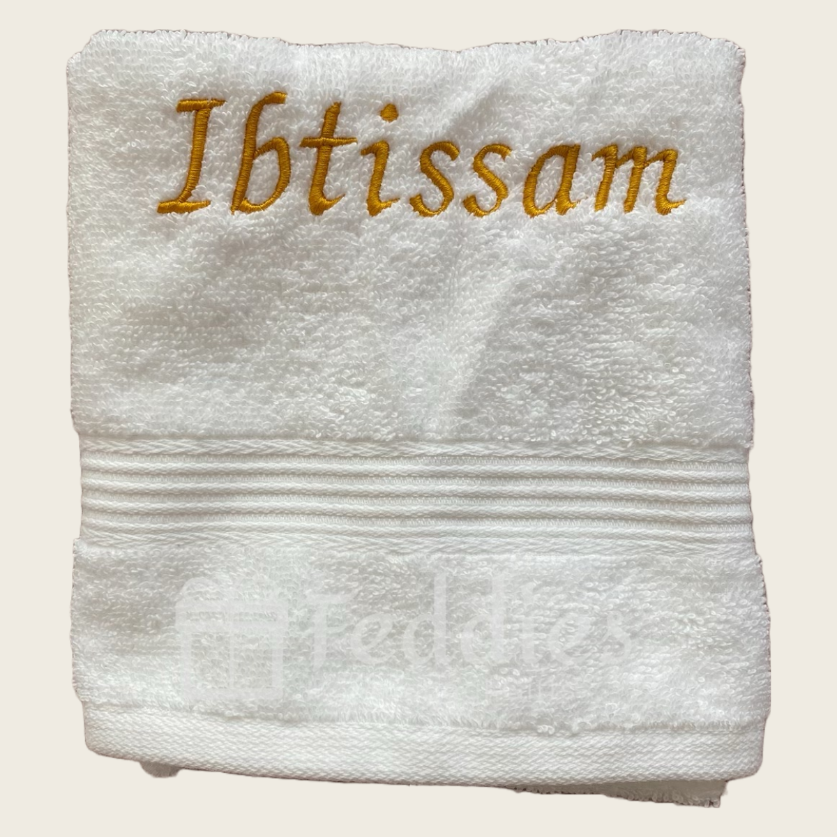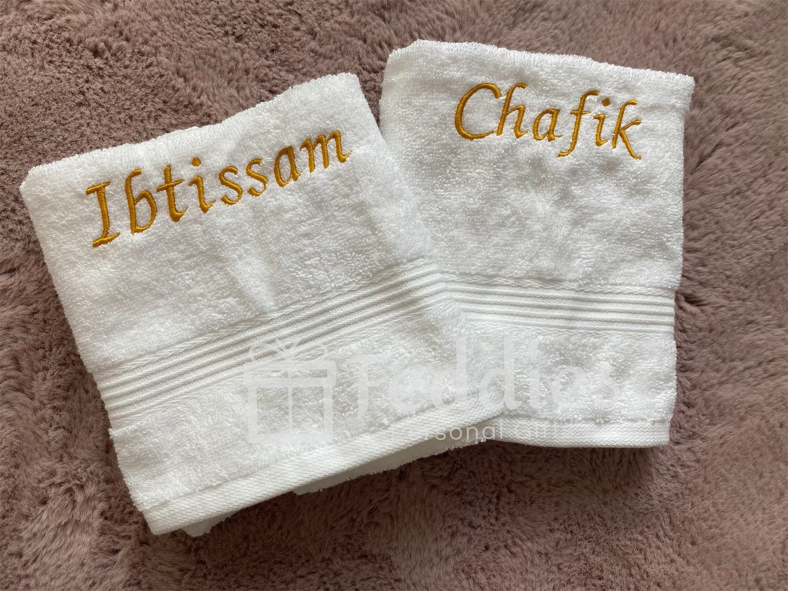 Een zacht handdoekje, gebruikt iedereen graag in de badkamer, maar nog mooier met je eigen naam erop. Ook ideaal als huwelijkscadeau. Dit artikel is ook te krijgen in onze bride&groom set.