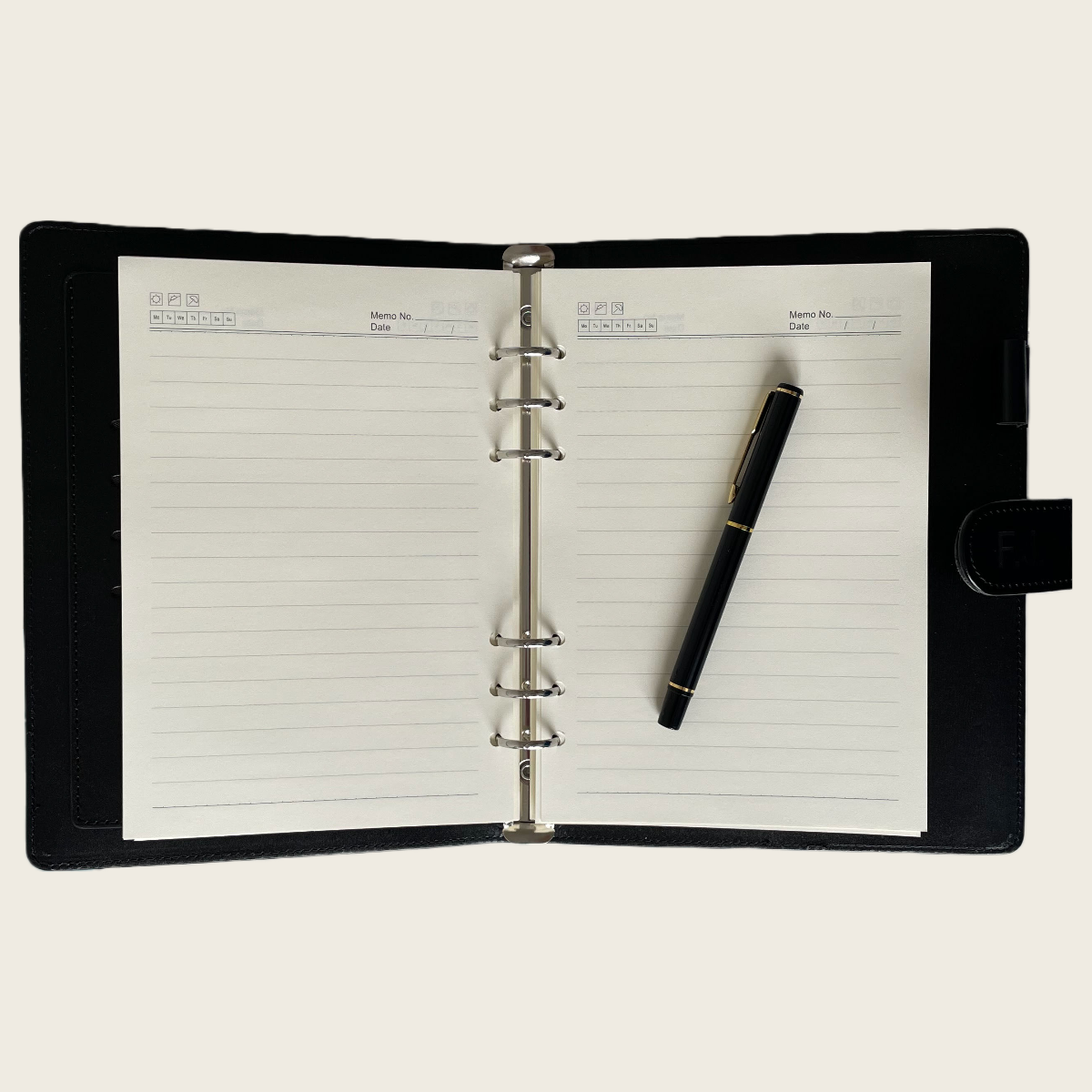 Notitieboekje is hervulbaar met 6 rings A5 papier.