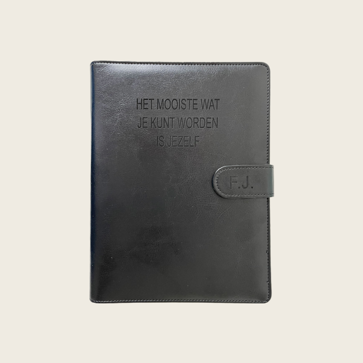 Dit leren notitieboekje is een uniek cadeau voor jezelf of iemand anders. Maak hem persoonlijk door er een eigen tekst en initialen in te laten graveren. Doordat het van leer is en hervulbaar, gaat het een leven lang mee.