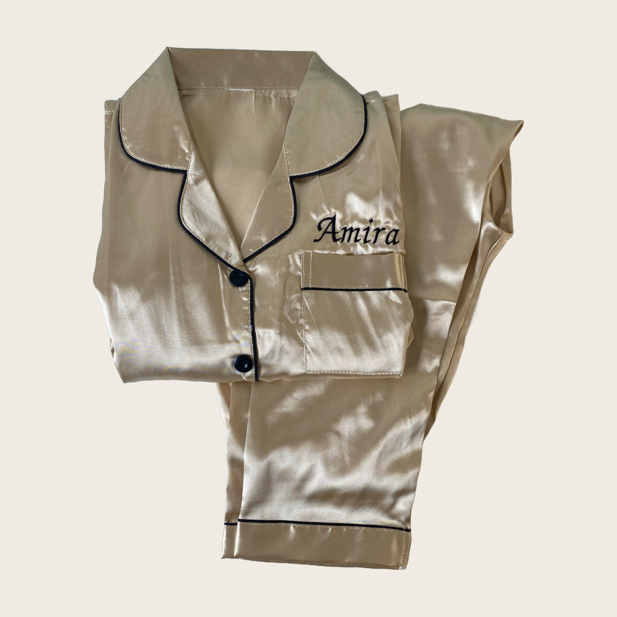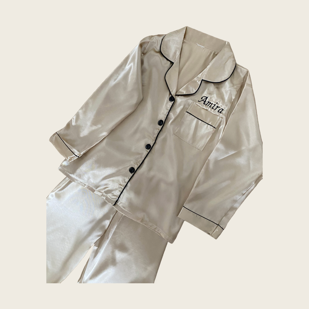 Personaliseer deze schattige kinderpyjama met een borduring. Kies zelf de kleur tekst en naam en maak een kindje heel blij met deze unieke pyjama.